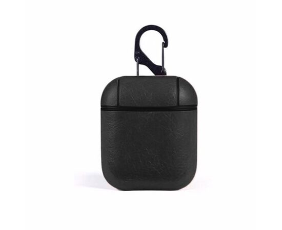 Προστατευτική Θήκη τύπου δερματος για Γνήσια Apple AirPods Ακουστικά με Keychain Hook Μαύρο