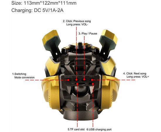 BUMBLEBEE Μίνι Φορητό Ασύρματο Bluetooth Ηχείο με LED & FM / Flashing Light Led Loudspeaker BT Transformers with Support TF