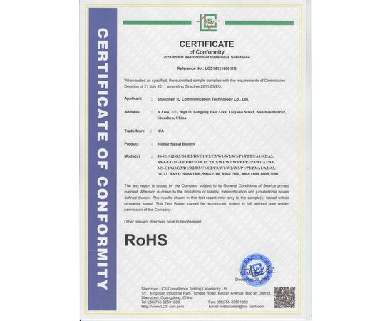 Όλα τα repeater IQ TELECOM GSM 4G συμμορφώνονται με το 1999/5/EC EUROPEAN STANDARD και φέρουν πιστοποιητικό CE.