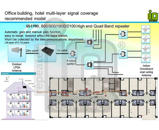 Ενισχυτής Αναμεταδότης Σήματος Κινητής Τηλεφωνίας IQ TELECOM GSM 4G - 4G Plus (SS65-DCS) 1800mhz (Cosmote-Vodafone-Nova) Output Power :33dbm,Gain:85db 3000-4000m²
