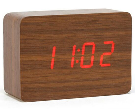 Ξύλινο Επιτραπέζιο Ρολόι Ξυπνητήρι με Αισθητήρα Ήχου και Δόνησης - Ημερολόγιο και Θερμόμετρο Σκούρο Καφέ με Κόκκινα LED OEM