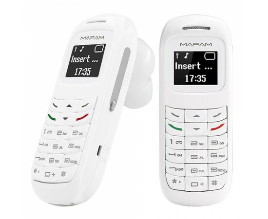 L8STAR Bluetooth Ακουστικό Handsfree + Ultra Mini Κινητό Τηλέφωνο Με Αλλαγή Φωνής - Mini CellPhone Sim Card Λευκό BM70