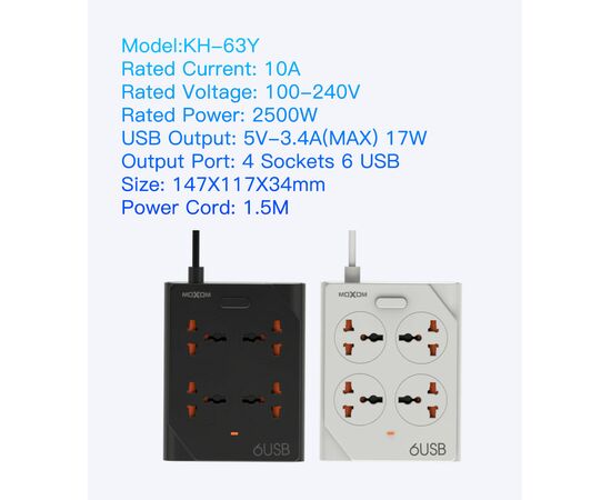 Πολύπριζο & Φορτιστής LDNIO MOXOM KH-63Y με 6 Θύρες USB 10A