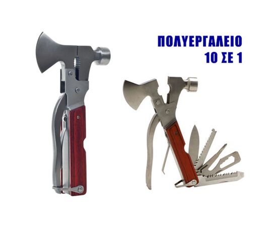 Πολυλειτουργικό Πολυεργαλείο 10σε1 με Σφυρί, Τσεκούρι, Πένσα, Μαχαίρι, Λίμα, Πριόνι, Ανοιχτήρι, Κατσαβίδια OEM