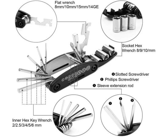 Πολυλειτουργικό Εργαλείο LUTA LT-09-165 / Bike Sixteen & A Combination Of Tools Μαύρο