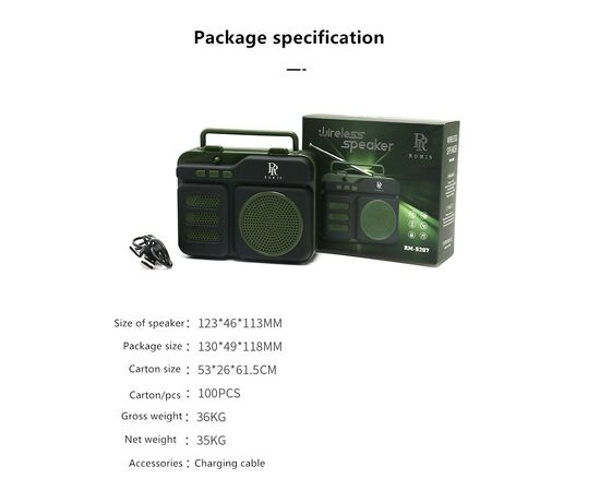 Ασύρματο Φορητό Bluetooth Ηχείο 5W με Ραδιόφωνο / Radio Portable Wireless Speaker Bluetooth Romis RM-S207 Music Box Πράσινο