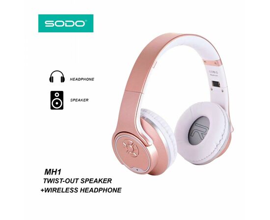 SODO MH1 Wireless Bluetooth Headphones and 2 in 1 Speaker Stereo Bluetooth NFC with Mic Rose Gold