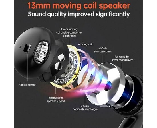 Με τον οπτικό αισθητήρα, θα διακόψει αυτόματα τη μουσική κατά την απομάκρυνση από το αυτί και την αυτόματη αναπαραγωγή όταν το φοράτε. Υποστηρίζει έλεγχο κουμπιών αφής, εύκολο έλεγχο μουσικής και κλήσεων.