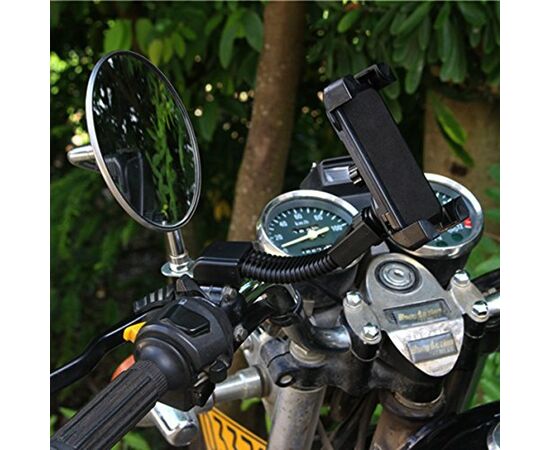 Το Universal Motorcycle Phone Mount Holder ταιριάζει σχεδόν σε όλα τα κινητά τηλέφωνα / smartphone όπως: (iPhone 7 /6 / 6S / 6 plus / 6s plus / 5 / 5S / Se / 5C, Samsung Galaxy S3 / S4 / S5 / S6 / s7 Edge / HTC / Nexus κ.λπ.). Ευέλικτη και περιστρεφόμενη βάση στήριξης 360 μοιρών, μπορεί να προσφέρει τον ιδανικό σας τρόπο προβολής και μπορεί να πιάσει το τηλέφωνό σας κάθετα και πλάγια σταθερά. Θήκη τηλεφώνου με μαλακά προστατευτικά μαξιλαράκια για το κινητό σας, ώστε να μπορεί να διατηρήσει το τηλέφωνό σας στο ποδήλατο σας ανθεκτικό και σταθερό. Κυρίως κατασκευασμένο από ελαφρύ πλαστικό, μεταλλικό υλικό: Ρυθμιζόμενο, σταθερό και το τηλέφωνο μοτοσικλέτας Mount Universal για τους περισσότερους καθρέφτες οπισθοπορείας μοτοσικλετών. Εύκολη τοποθέτηση της θήκης τηλεφώνου μοτοσικλέτας κάτω από τον καθρέφτη, Δεν απαιτούνται άλλα εργαλεία (Σημείωση: Πριν από τη χρήση, βεβαιωθείτε ότι οι πλαστικές βίδες στο στήριγμα είναι σφιγμένες).